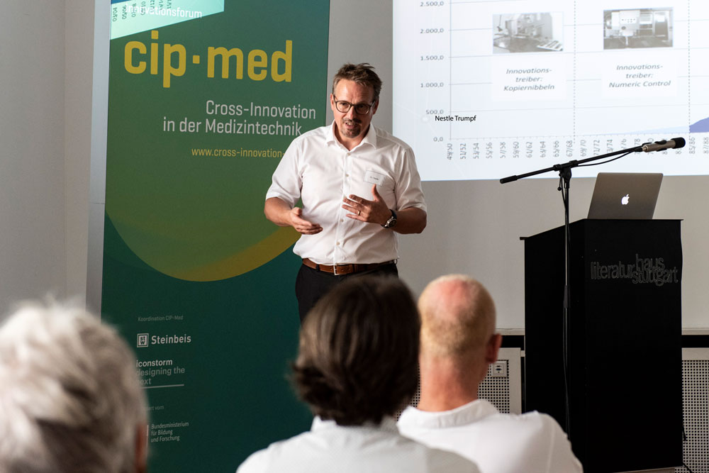 Das CIP-Med Innovationsforum treibt die Vernetzung der Branchen rund um die Medizintechnik voran. Es dient seinen Teilnehmern als Plattform zum Erfahrungsaustausch, zum Testen neuer Ideen und zum Etablieren wertschöpfungsorientierter, innovationsförderlicher Zusammenarbeit. Im Mittelpunkt stehen dabei die Methoden des Cross-Industrie-Innovation-Ansatzes. Dieser wird mit Experten aus den Feldern der Personalisierung und nutzerzentrierten Innovation für die Anforderungen der Branche systematisiert.